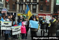 В Нью-Йорке прошла акция в поддержку украинской военнослужащей Надежды Савченко, находящейся под арестом в России по обвинению в причастности к гибели съемочной группы ВГТРК в Донбассе в июне 2014 года.