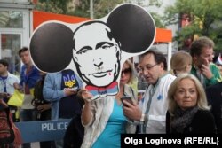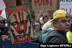 В воскресенье, 27 сентября, накануне выступления Президента России Владимира Путина в Генеральной ассамблее Организации Объединенных Наций неподалеку от здания ООН прошла акция протеста против приезда российского лидера в Нью-Йорк и его агрессивной внешней политики.