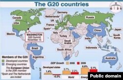 Группа Двадцати или Большая Двадцатка, известная как G-20, – международная платформа двадцати стран с мощнейшими экономиками мира. В ней принимают участие 19 государств, а также Европейский Союз, который представляют Европейская Комиссия и Европейский Центральный Банк. Экономики стран-членов Двадцатки производят до 85% валового мирового продукта и формируют до 4/5 всеобщего объема мировой торговли.