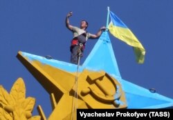 – Он забрался на московскую сталинскую высотку и покрасил звезду в цвета украинского флага.