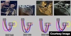 У каждого «Бука» к лафету пускового устройства подключены кабели. Однако переплетаются они на всех установках по-разному. Сравнив фотографии, авторы расследования выяснили, что рисунок подключения на фото установки, побывавшей на Украине, совпадает лишь с одним из «Буков» 53-й бригады – все тем же «332-м».