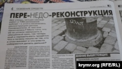 Еженедельник «Крымское время» в статье «Пере-недо-реконструкция» рассказывает о скандальном и дорогом ремонте улиц в центре Симферополя. «Две улицы, четыре месяца работ и 180 миллионов рублей – с этого начиналась реконструкция центра Симферополя. А чем она закончилась? Мало того, что ее не успели завершить в обещанный срок, так теперь еще и переделывать придется», – отмечает издание. В статье перечисляются самые проблемные моменты реконструкции. «Слишком велики швы между уложенными плитками. Их пришлось оставлять, чтобы не заполнять остававшиеся зазоры плиточными обрезками. Врезанные в тротуары светильники таки пришлось обрамлять мелко нарезанной плиткой. Выглядит неаккуратно и некрасиво. Почти все светильники, врезанные в тротуар, установлены просто похабно. Фонарные столбы зачастую не стоят на тротуаре, а утопают в плитке. До сих пор не ясно, почему установленные после реконструкции решетки ливневой канализации имеют столь затрапезный вид. Почему они ржавые, хотя их только-только поставили?», – возмущается еженедельник.