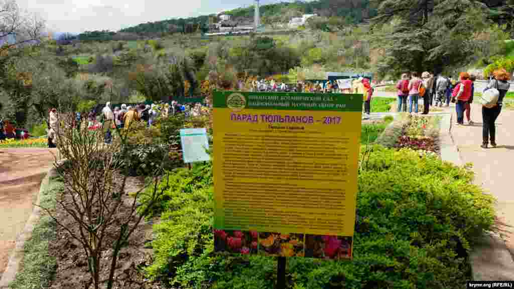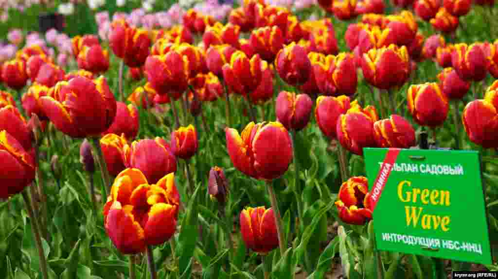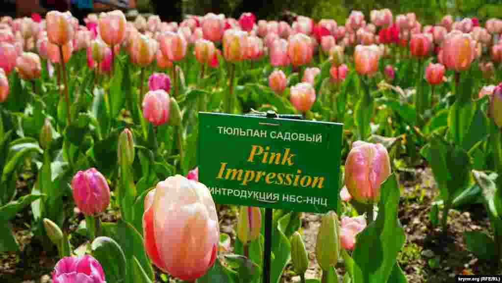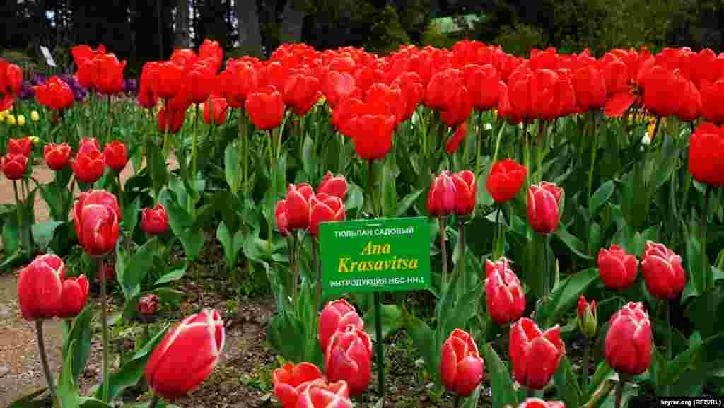 В этом году на экспозиционном участке выставки высажено 37,5 тысяч луковиц тюльпанов 189 сортов. Из них 170 сортов тюльпанов иностранной селекции и 19 сортов и гибридных форм селекции Никитского ботанического сада, 68 сортов иностранной селекции и 2 гибридные формы селекции НБС экспонируются впервые.