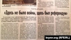 «Крымская правда» в статье «Здесь не было войны, здесь был референдум» сообщает о приезде в Крым сербского режиссера Эмира Кустурицы, который уже попал в базу украинского «Миротворца».