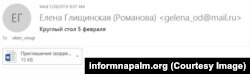Впоследствии Глищинская поменяла в настройках своего почтового ящика фамилию, и письма, приходившие от нее в администрацию президента, уже были помечены ее настоящим именем и фамилией: