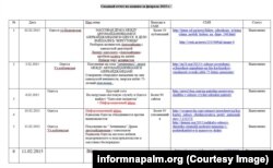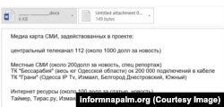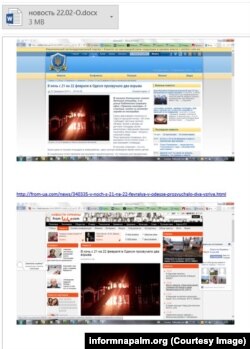 Одни из самых интересных писем в опубликованном массиве – от некоей "Луизы Мамедовой". Она присылает Иналу Ардзинбе ссылки на заказные статьи в СМИ, предлагает кандидатов для сотрудничества, а в январе снабжает его файлом "Одесса Наши.docx", в котором перечисляются личные данные бывших и действующих сотрудников правоохранительных органов Одессы и Одесской области. Но самый интересный документ, присланный ей в администрацию президента, называется "Сводный отчет по акциям за февраль 2015 г." В нем перечисляются "информационные вбросы", рассказывается о спровоцированной драке между сторонниками "Автомайдана" и представителями азербайджанской диаспоры, о поджоге автобуса, выезжавшего из офиса "Правого сектора" – все это со ссылками, подтверждающими, что акция или вброс действительно состоялись: