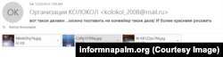 Еще один часто встречающийся адресат в почтовом ящике – Антон Давидченко, глава движения "Молодежное единство", председатель одесской пророссийской молодежной организации "Колокол", организатор пророссийских митингов в Одессе весной 2014 года. В начале ноября он присылает Ардзинбе макеты плакатов с призывом к Владимиру Путину с просьбой "наказать убийц 2 мая в Одессе". 12 ноября неизвестные вывесили на одном из одесских мостов баннер с такой же картинкой, как в письме, и Давидченко отчитывается за проделанную акцию с помощью фотографий: