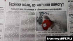 «Крымская правда» в статье «Техники мало, но частники помогут» рассказывает о подготовке полуострова к обильным снегопадам. «В Крыму не хватает снегоуборочной техники, – отмечает газета. – Примерно в два раза меньше необходимого количества грейдеров, погрузчиков и других машин для уборки. Последствия такого дефицита мы ощутим уже в ближайшие дни». По словам замглавы комитета по строительству и ЖКХ подконтрольного России парламента Крыма Валерия Аксенова, ситуация с нехваткой техники для уборки снега постепенно решается. Но пока на весь полуостров есть 35 грейдеров из необходимых 62-х и только 47 из 124-х погрузчиков. «Постепенно эта проблема исчезнет. Нужно понимать, что ничьей вины в этом нет. При Украине техники не было совсем, а она стоит больших денег, – пояснил Аксенов. – Скажу также для примера. В Магадане, например, каждый год снег идет и каждый год возникают сложности. Хотя там к такой погоде чиновники должны быть готовы». Также Валерий Аксенов пояснил, что в уборке снега будут задействованы и частные фирмы.