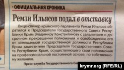 «Крымские известия» сообщают об отставке подконтрольного России вице-спикера Ремзи Ильясова. Он обратился к председателю крымского парламента Владимиру Константинову с заявлением о досрочном прекращении полномочий и освобождении его от замещаемой государственной должности, пишет издание со ссылкой на пресс-службу ведомства. О причинах отставки Ремзи Ильясова парламентская газета не сообщает.