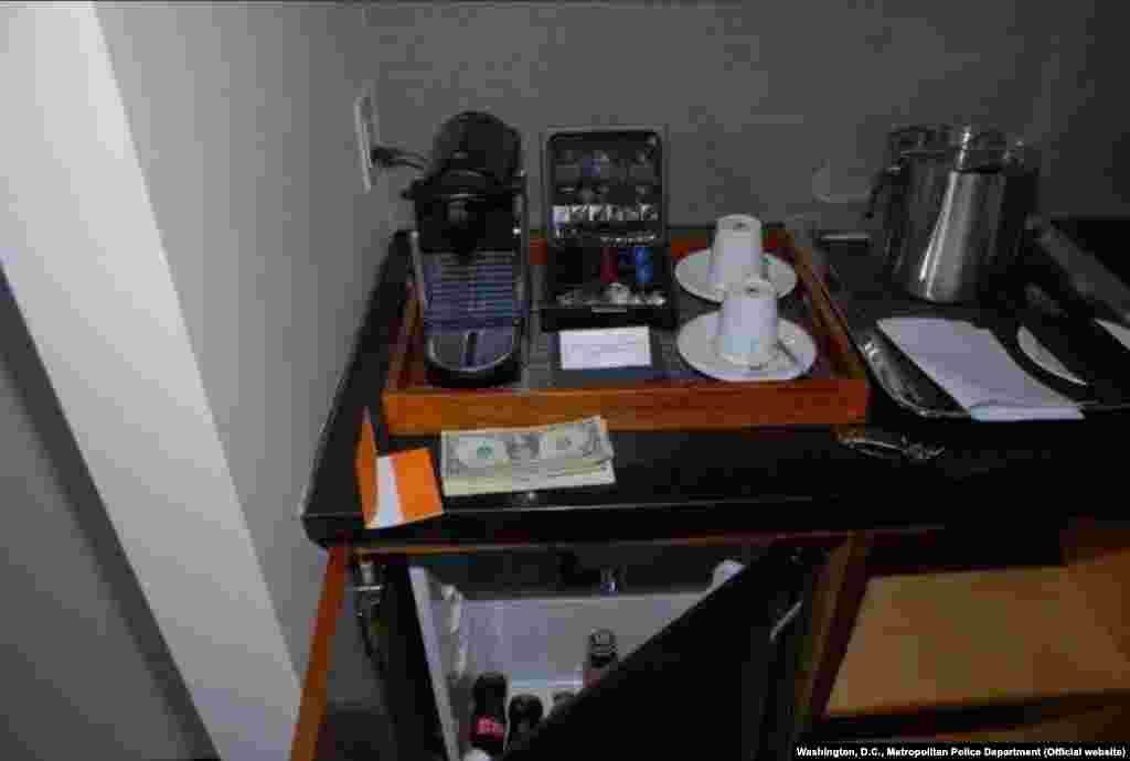 Радио Свобода собрала фотографии выпущенные ранее столичным управлением полиции Вашингтона, которые показывают состояние гостиничного номера Лесина на момент его смерти