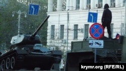 В Севастополе колонну российской военной техники на репетиции парада возглавила «Катюша» – боевая машина реактивной ствольной артиллерии военных лет. На реактивных снарядах было написано «За Сталина! От Катюши!». А в Керчи в подготовке к параду участвовали российские военные, МЧС России и «юнармейцы». На репетиции также была российская военная техника: от броневиков, БТРов, минометов и гаубиц, систем «Град» до зенитных ракетных систем С-300.