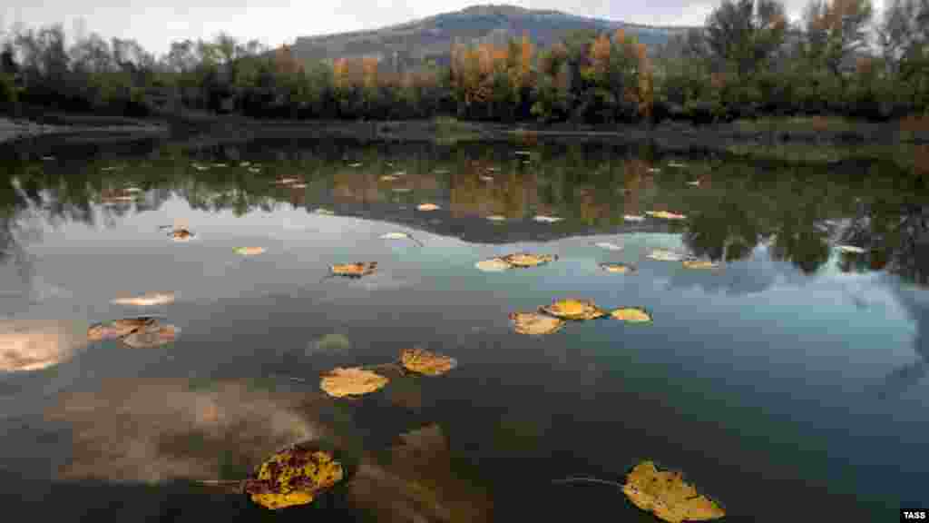 Опавшие листья на озере в селе Малиновка Симферопольского района.