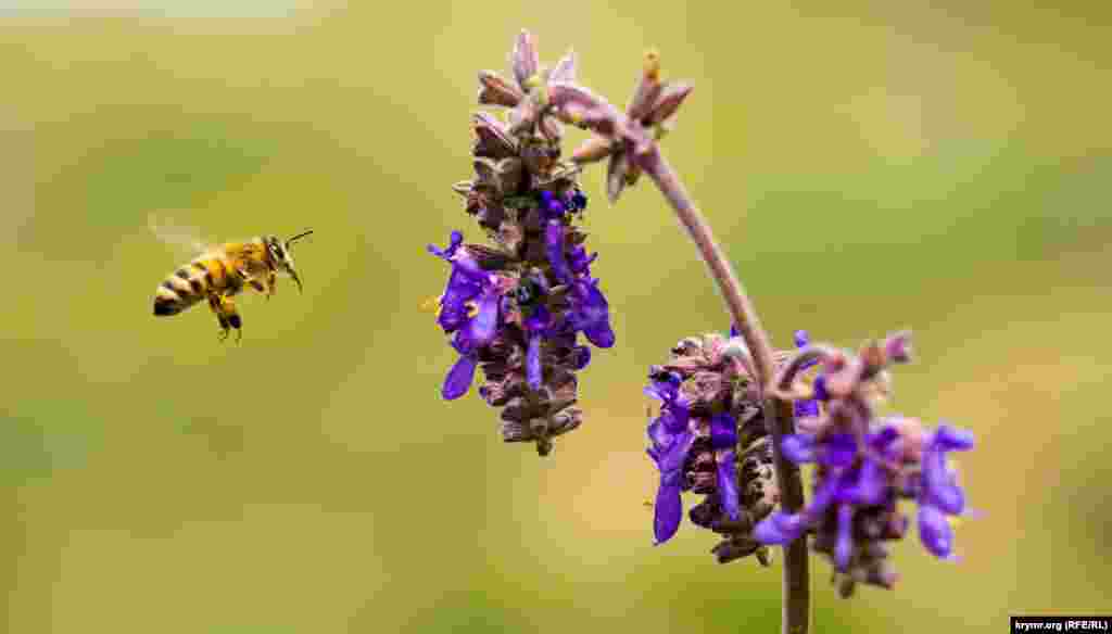 Пчела на подлете к луговому медоносу на окраине Симферополя | Крымское фото дня