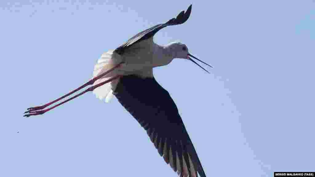Кулик над озером Чокрак, где отдыхающие принимают грязевые ванны, в поселке Курортное Ленинского района.