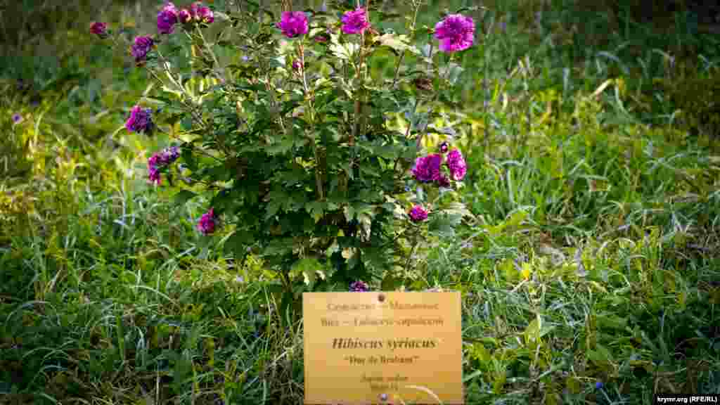 Этот куст именной, его в университетском ботсаду высадила пара влюбленных. Такое давно практикуется в Симферополе, когда горожане дарят растения городу по какому-то знаменительному в их жизни событии.