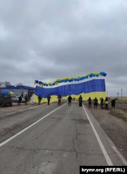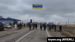 26 февраля на админгранице полуострова с Херсонской областью также развернули украинский и крымскотатарский флаги.