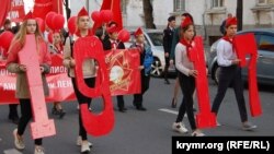 После митинга активисты прошли праздничным шествием по проспекту Нахимова. Впереди пустили оркестр, который играл «Интернационал» и музыку советского периода. Пионеры шли молча с баннером своей организации в руках. Комсомольцы размахивали бутафорским молотом и серпом, кричали лозунги «Ленин, партия, комсомол», «Буржуев на нары», «Россия, молодость, социализм».