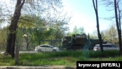 По Симферополю утром 30 апреля прошла большая колонна военной техники, сообщает корреспондент Крым.Реалии.