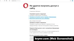 При попытке подключиться к сайту Крым.Реалии через оператора мобильной связи «Севмобайл» браузер «Опера» также сообщает о невозможности установления связи с сервером.