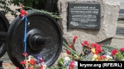 В Керчи 18 мая к памятнику жертвам депортации крымских татар приносят цветы, сообщает корреспондент Крым.Реалии.