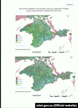 По состоянию на 2017 год, в сравнении с 2014 годом, общая площадь покрытых «здоровой» продуктивной растительностью участков в аннексированном Крыму уменьшилось в 6,7 раз, а объемы выращивания озимых культур на территории Крыма в период 2014-2017 годов сократились на 85 процентов.