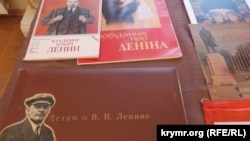 В фойе зала, где проходило мероприятие, устроили выставку портретов и бюстов Ленина и Сталина, также развесили предметы советской атрибутики – флажки и вымпелы. Сообщается, что экспонаты предоставил частный коллекционер.