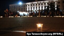 В центре Симферополя на площади Ленина 18 мая подконтрольные Кремлю власти Крыма провели акцию «Зажги огонь в своем сердце», посвященную Дню памяти жертв депортации крымских татар. Мероприятие посетило около 200 человек, сообщает корреспондент Крым.Реалии.