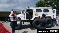 В центре Симферополя проходят мероприятия, приуроченные к празднованию Дня российского пограничника. На площади им. Ленина организовали выставку военной техники, стрелкового вооружения, которыми располагают подразделения Погрануправление ФСБ.