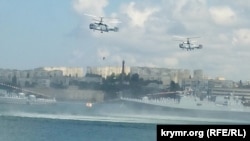 Также в ходе репетиции военные продемонстрировали ряд учебно-боевых эпизодов по поиску и уничтожению подводной лодки условного противника, выход из Севастопольской бухты надводных кораблей.