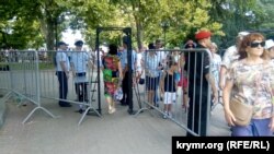 Как сообщается, перед началом репетиции металлическими ограждениями был перекрыт вход на Приморский бульвар и организована пропускная система через рамки-металлоискатели для желающих просмотреть тренировку.
