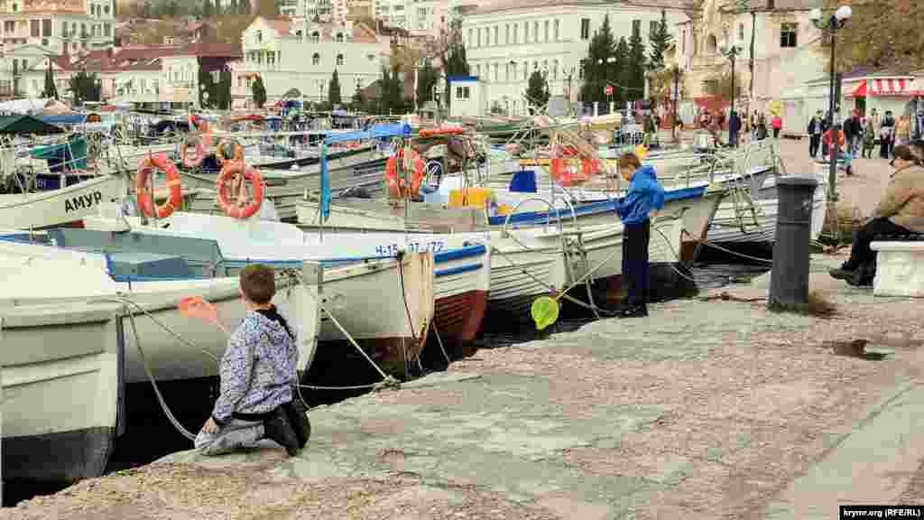 Дети ловят крабов на набережной Назукина в Балаклаве | Крымское фото дня
