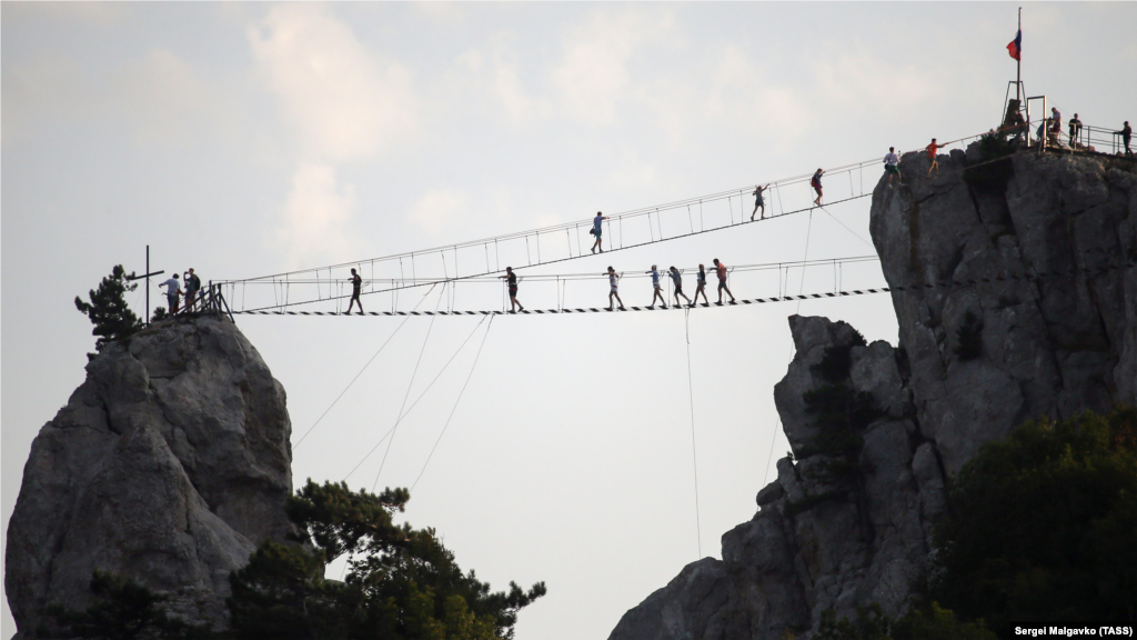 Туристический маршрут над пропастью под названием «Небесная тропа» открыли на горей Ай-Петри на Южном берегу Крыма.