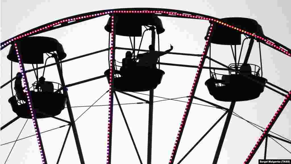 Отдыхающие на колесе обозрения в парке аттракционов в Судаке | Крымское фото дня