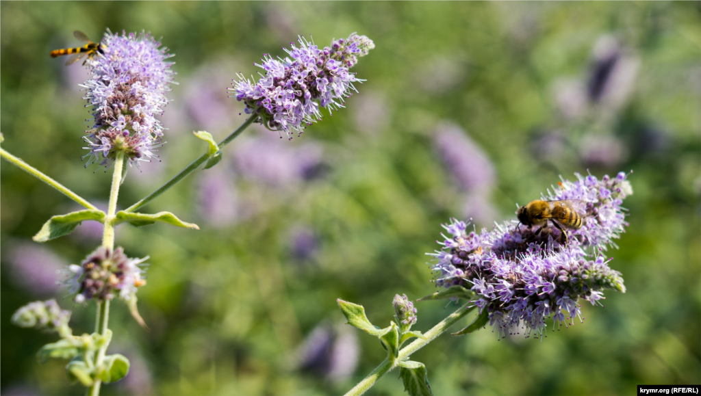 Цветки мелкие многочисленные, собраны в колосовидные соцветия, опушенные, бледно-фиолетового оттенка. Цветение наступает раньше, чем у других видов – в середине лета. Длиннолистная мята является хорошим медоносом, растет практически по всему миру.