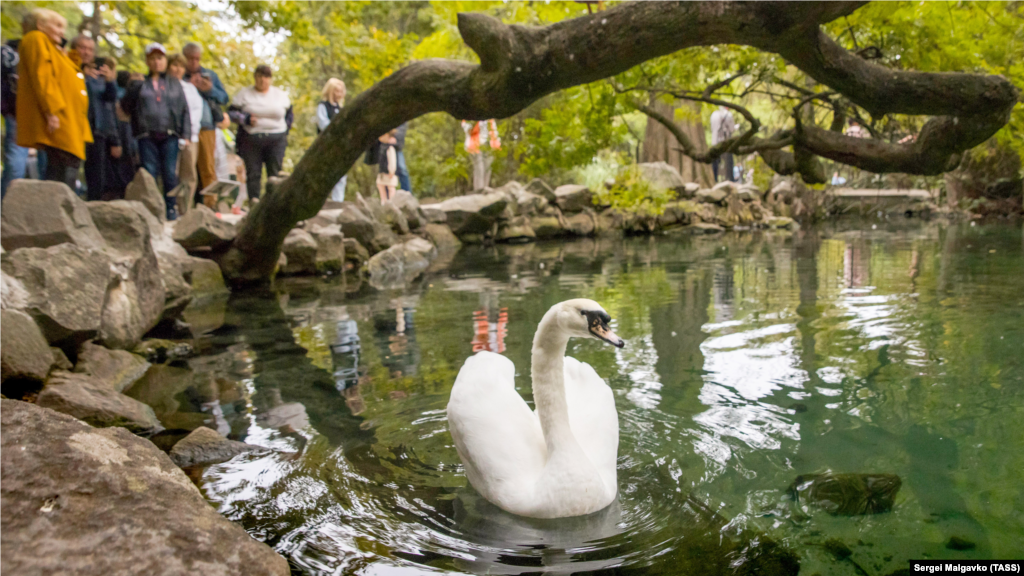Белый лебедь на озере в парке Воронцовского дворца в Алупке | Крымское фото дня