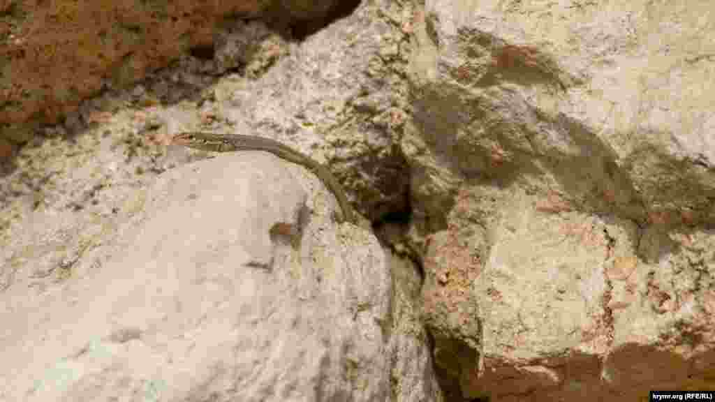 В окрестностях Инкерманской долины, которая находится в Балаклавском районе Севастополя, остались достопримечательности со времен средневековья. Лучше всего сохранились пещерный Свято-Климентовский монастырь и крепость Каламита, которая стоит на Монастырской скале. На ее развалинах и удалось запечатлеть ящерицу.