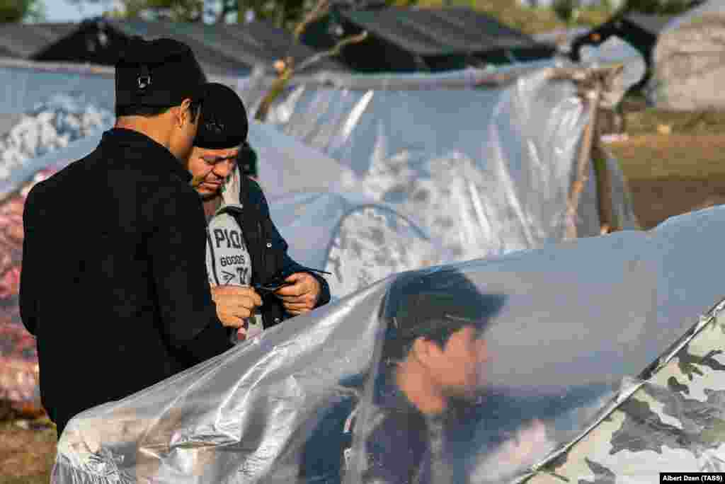 Как трудовые мигранты из Узбекистана уже не первый месяц живут в стихийном палаточном городке – смотрите в фотогалерее.