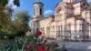 Октябрьские розы цветут в небольшом сквере возле храма Иоанна Предтечи в историческом центре Керчи