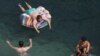 Отдыхающие на пляже в поселке Симеиз в конце курортного сезона в Крыму.